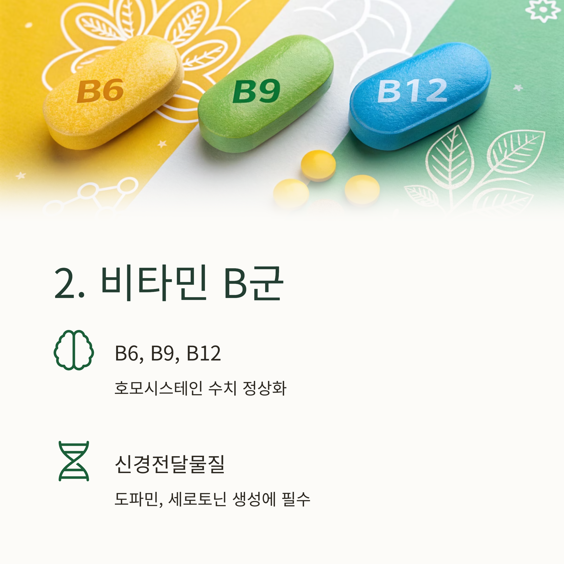 - B6, B9, B12의 핵심 역할: 혈관의 적인 '호모시스테인' 수치를 정상으로 유지!