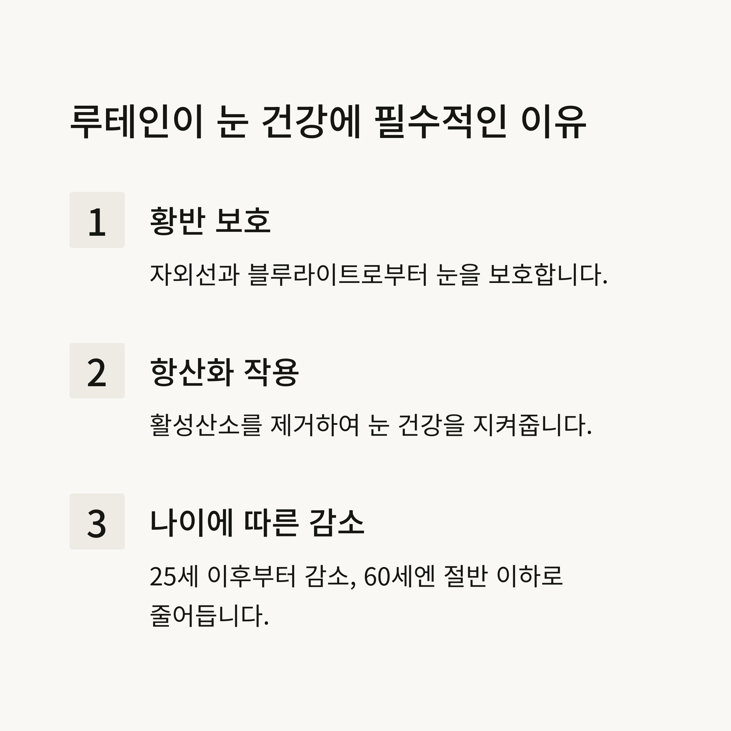 💡 오늘부터 시작하는 눈 건강 관리! 루테인과 함께 소중한 시력을 지켜나가세요.