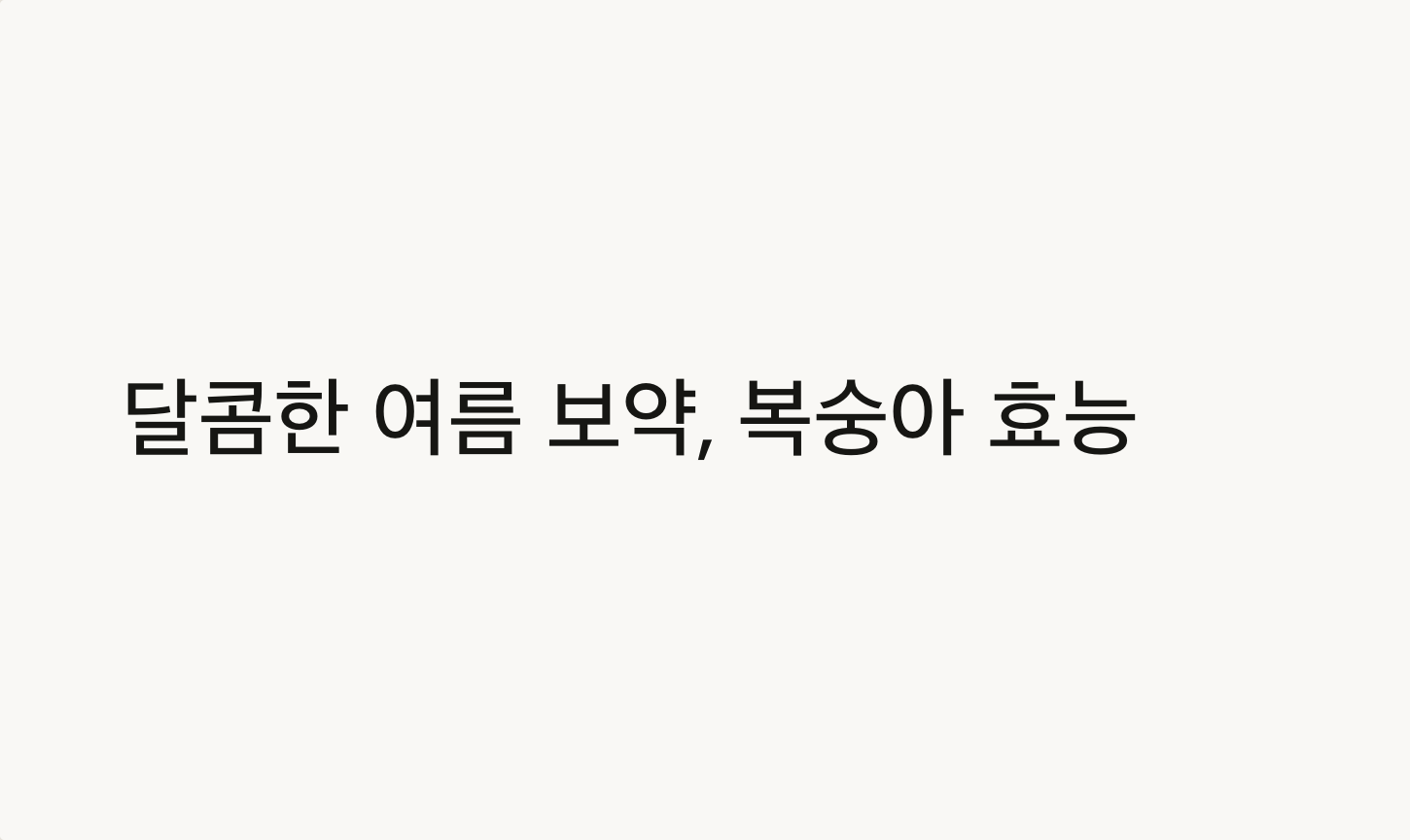 맛도 좋고 영양도 만점인 복숭아! 피부 미용, 장 건강, 면역력 강화, 눈 건강, 항암 효과, 해독 작용까지 우리 몸에 정말 다양한 이로움을 주니, 올여름 제철일 때 꼭 챙겨 드시길 바랍니다!