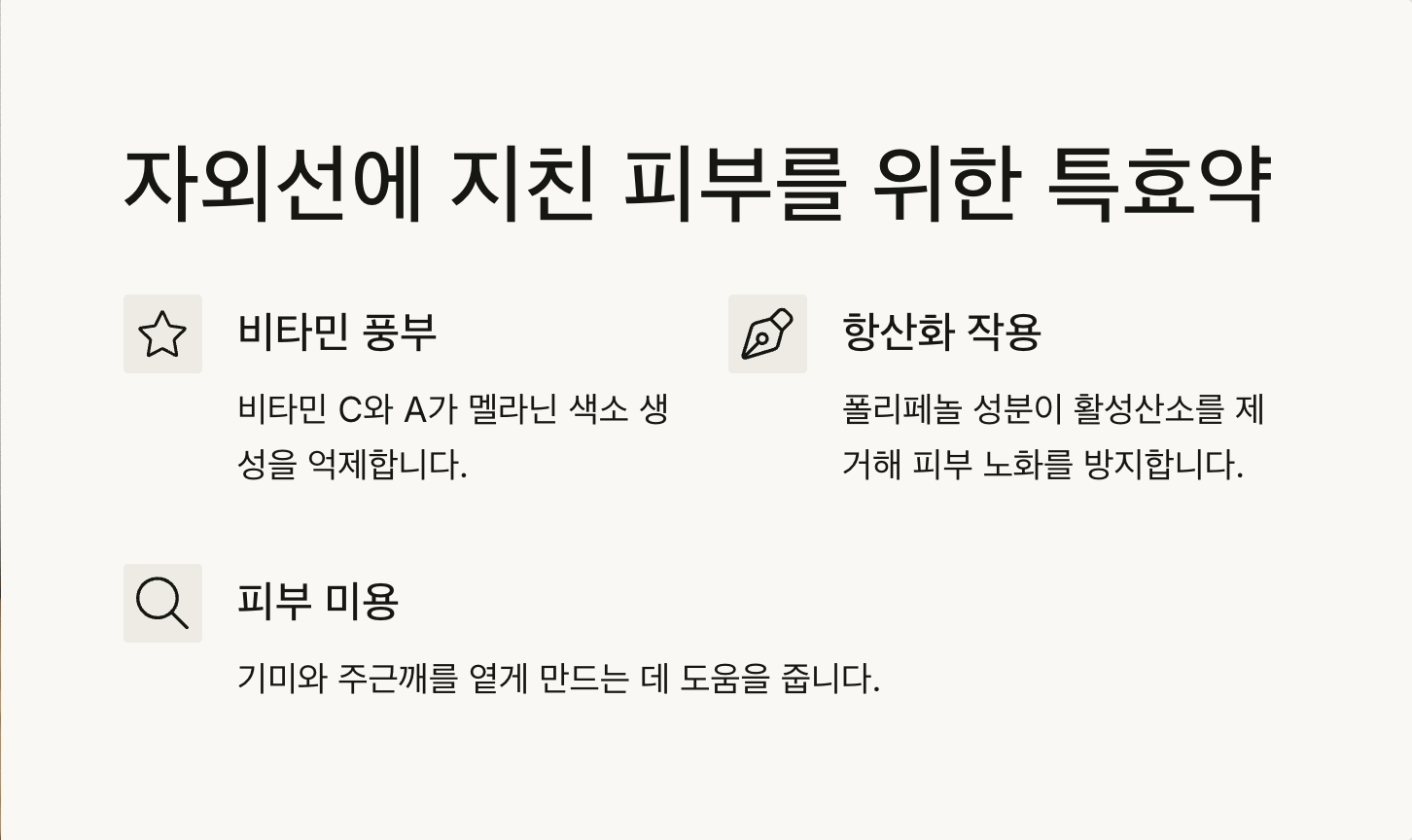 1. 자외선에 지친 피부를 위한 특효약! 피부 미용 효과