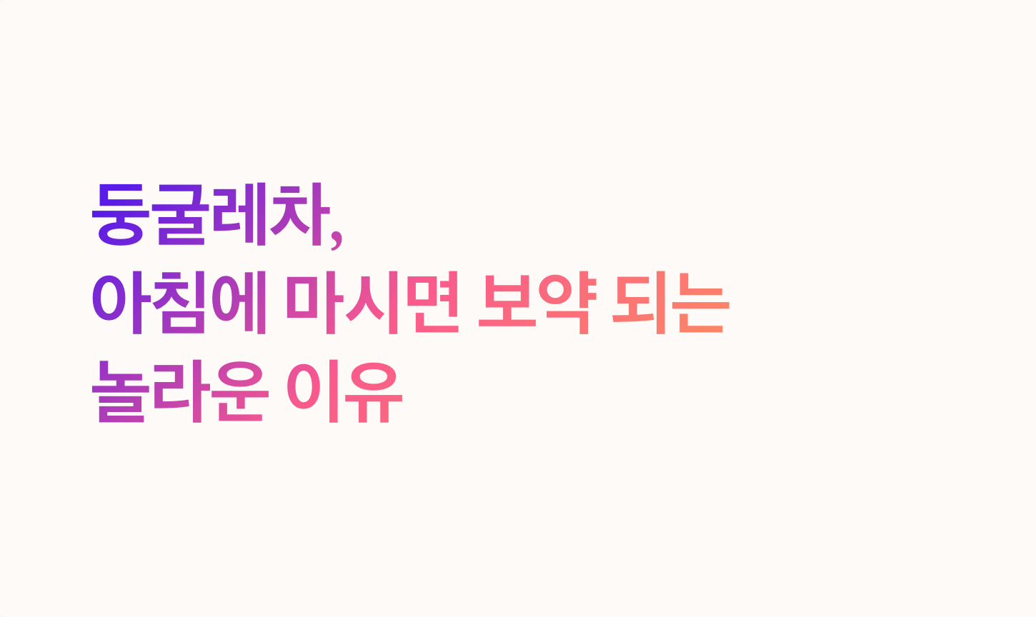 입니다. 인위적인 각성 효과 대신, 몸의 신진대사를 자연스럽게 활성화시켜 은은하고 꾸준한 활력을 선사하죠. 둥굴레차로 아침을 시작하면 불필요한 긴장감 없이, 몸과 마음을 가장 자연스러운 상태로 부드럽게 깨울 수 있습니다.