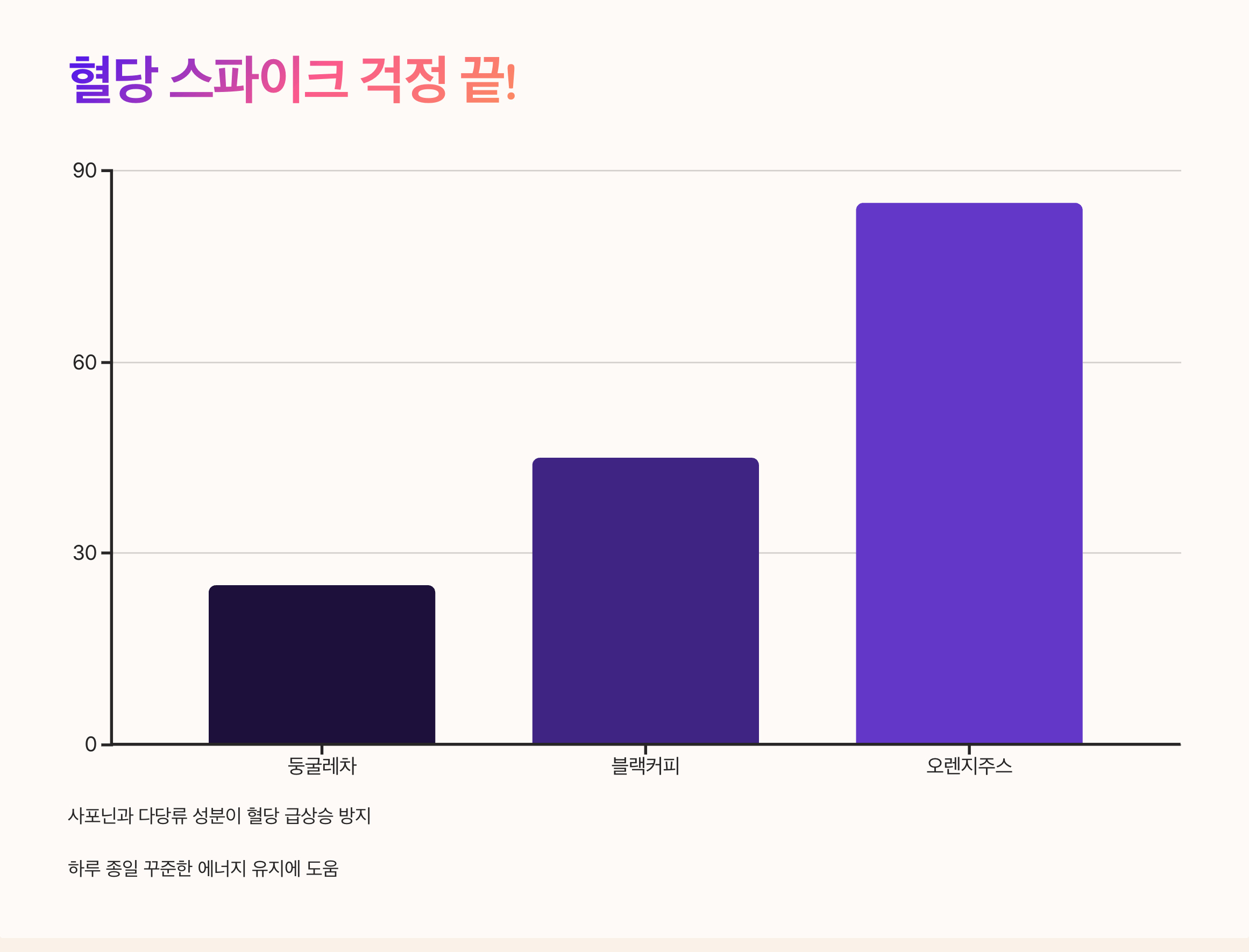 | 오렌지 주스 | 비타민 풍부, 당류 함량 높음 | 혈당을 급격히 상승시킬 수 있음 |