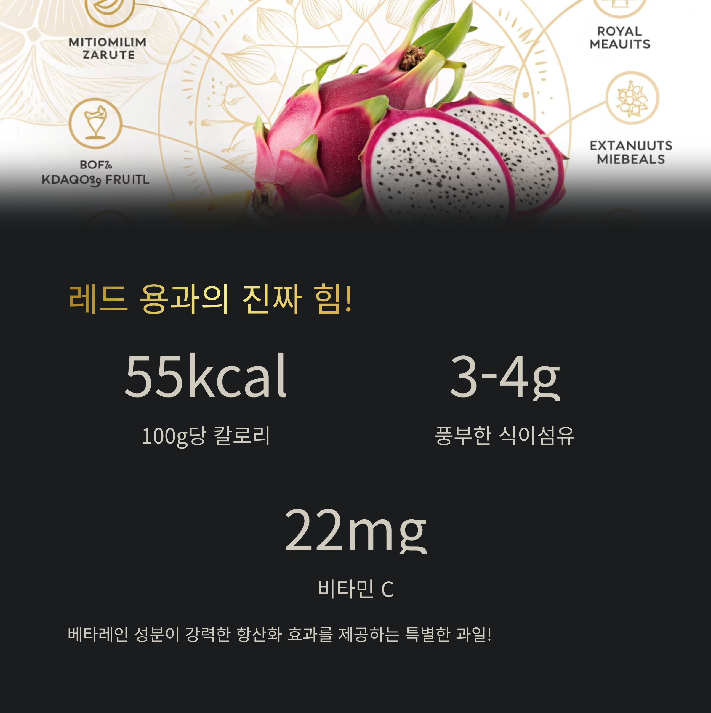 맛이 좀 슴슴하면 어때요? 레드 용과의 진짜 가치는 바로 영양 성분에 있습니다. 이 과일이 '슈퍼푸드'라 불리는 이유죠. 칼로리는 100g당 50~60kcal로 아주 낮은데, 우리 몸에 좋은 성분들은 꽉꽉 채우고 있어요. 특히 주목해야 할 성분은 바로 '베타레인(Betalain)'이라는 천연 색소예요. 이 성분 때문에 레드 용과가 그렇게 새빨간 거랍니다. 베타레인은 우리 몸의 유해산소를 없애주는 강력한 항산화 효과가 있는데, 이게 다른 과일에서는 찾아보기 힘든 레드 용과만의 특별한 무기라고 할 수 있어요.