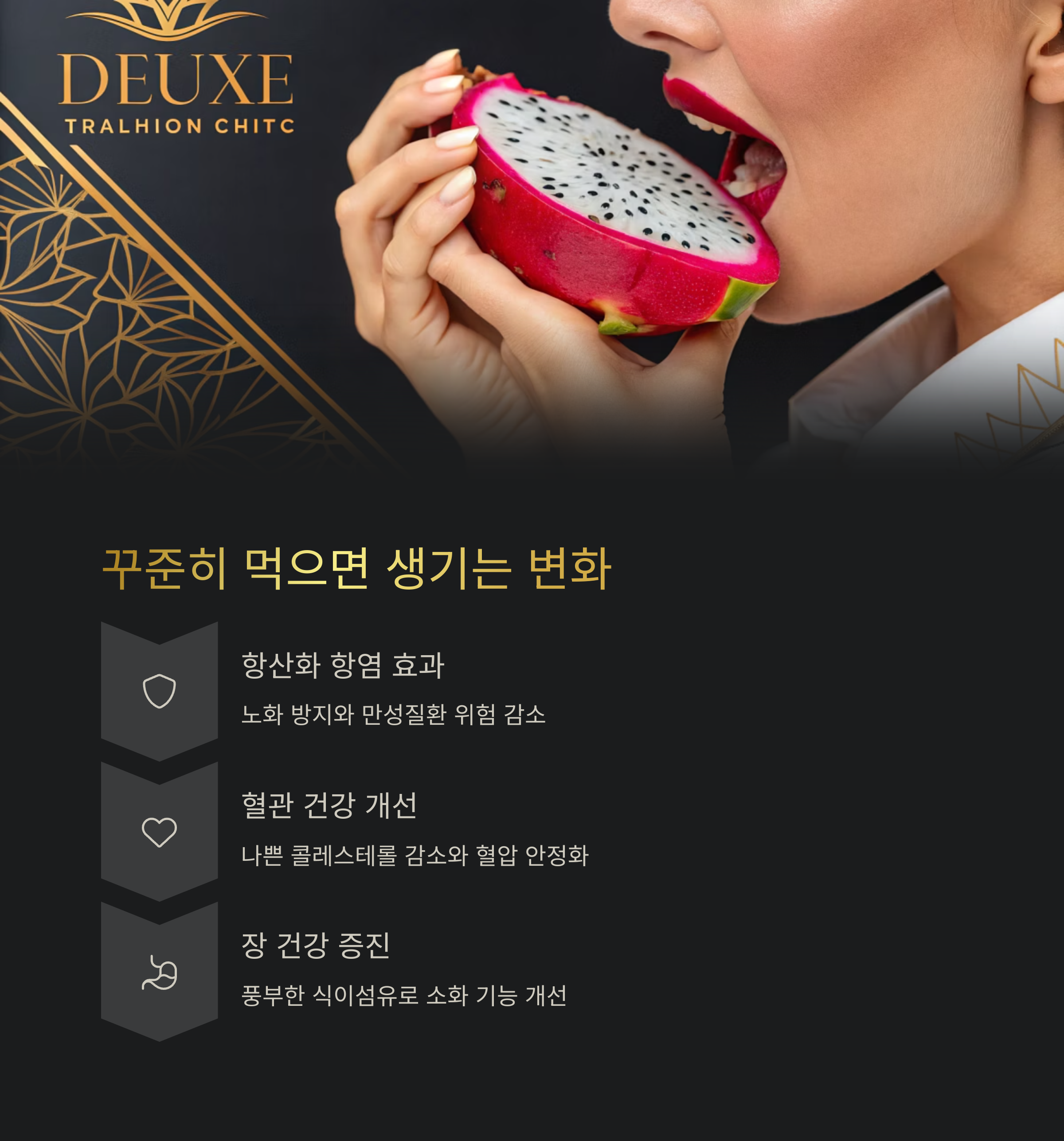 그렇다면 이렇게 좋은 성분들이 가득한 레드 용과를 꾸준히 먹으면 우리 몸에는 어떤 좋은 일들이 생길까요? 이건 정말 '압도적'이라고 말할 수 있을 것 같아요. 먼저, 강력한 항산화 및 항염 효과 덕분에 우리 몸의 노화를 늦추고 만성 질환의 위험을 줄여줘요. 면역력이 튼튼해지는 건 덤이고요. 또 혈관 건강에도 아주 좋은데요, 나쁜 콜레스테롤이 혈관에 쌓이는 걸 막아주고 혈압을 안정시키는 데 도움을 줍니다. 마지막으로 식이섬유가 워낙 풍부해서 화장실 가기 힘드셨던 분들에게는 희소식이 될 수 있어요. 장내 유익균의 먹이가 되어 장 환경을 개선하고 소화 건강을 증진시켜 주거든요.