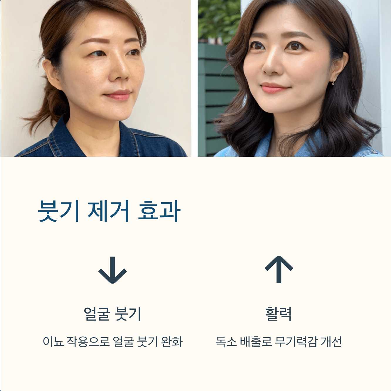 , 해독 작용으로 혈색을 맑게 하여 마치 조명을 켠 듯 환한 피부를 만들어 줄 수 있어요. 비싼 화장품을 바르는 것보다 몸속을 다스리는 것이 더 효과적인 피부 관리법이 될 수 있답니다.