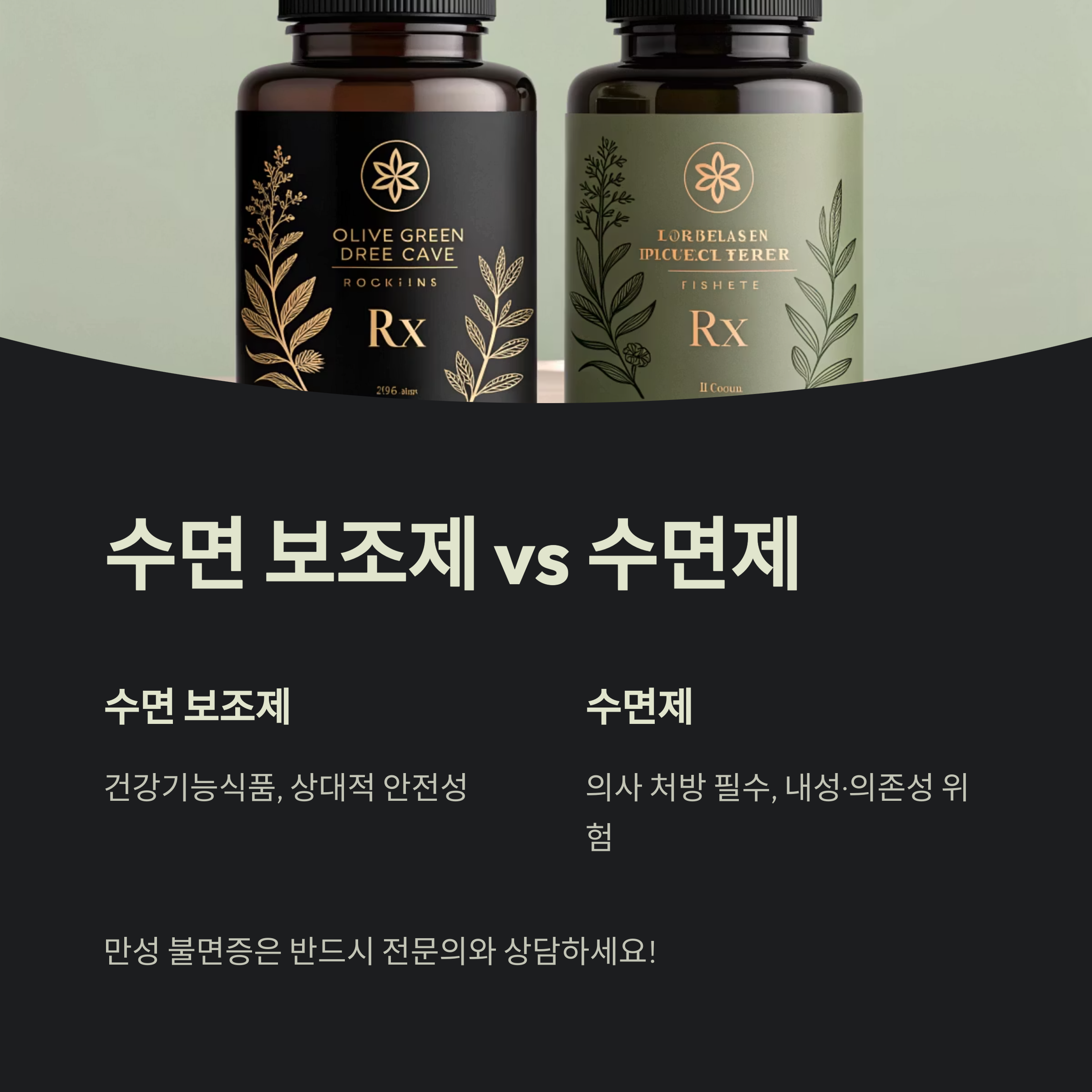 가장 중요한 점은 '수면 보조제'와 병원에서 처방받는 '수면제'는 완전히 다르다는 것입니다. 수면제(졸피뎀 등)는 효과가 강력하지만 의사의 처방이 반드시 필요하며, 내성, 의존성, 기억상실 등의 부작용 위험이 있습니다. 반면 오늘 다루는 수면 보조제는 식품의약품안전처에서 기능성을 인정받은 건강기능식품이나 일반 식품으로 분류되어 상대적으로 안전합니다. 하지만 효과는 개인차가 크고, 만성적이거나 심한 불면증은 반드시 전문의와 상담해야 합니다.