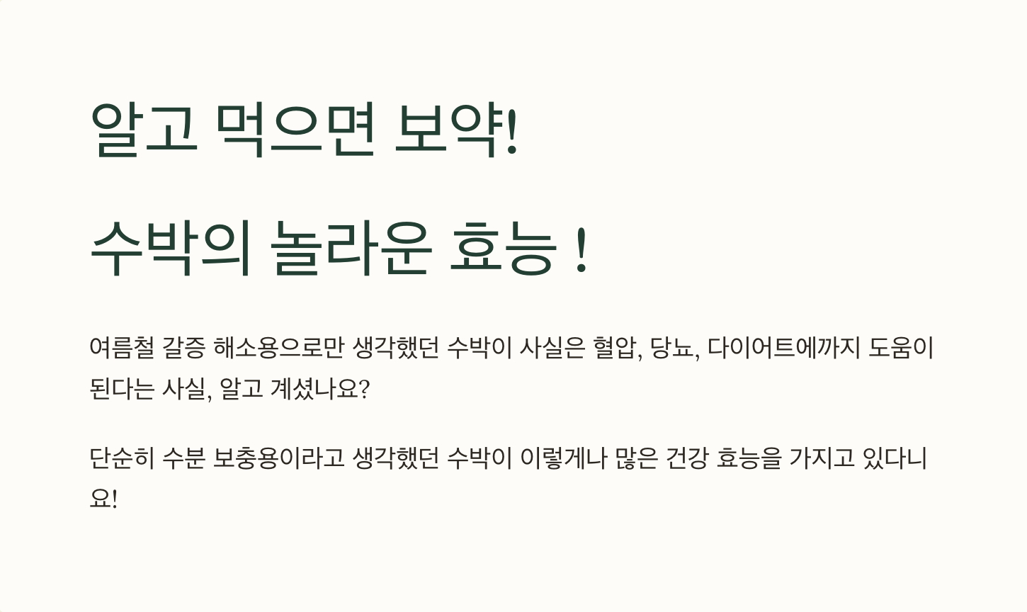 무엇보다 중요한 건 적당량을 지켜서 드시는 거예요. 아무리 좋은 음식도 과하면 독이 되니까요. 여러분도 이제 수박을 드실 때는 단순히 맛있게만 드시지 말고, 건강까지 생각하면서 현명하게 드시길 바라요. 건강한 여름 나시고, 수박과 함께 활력 넘치는 하루하루 보내세요!
