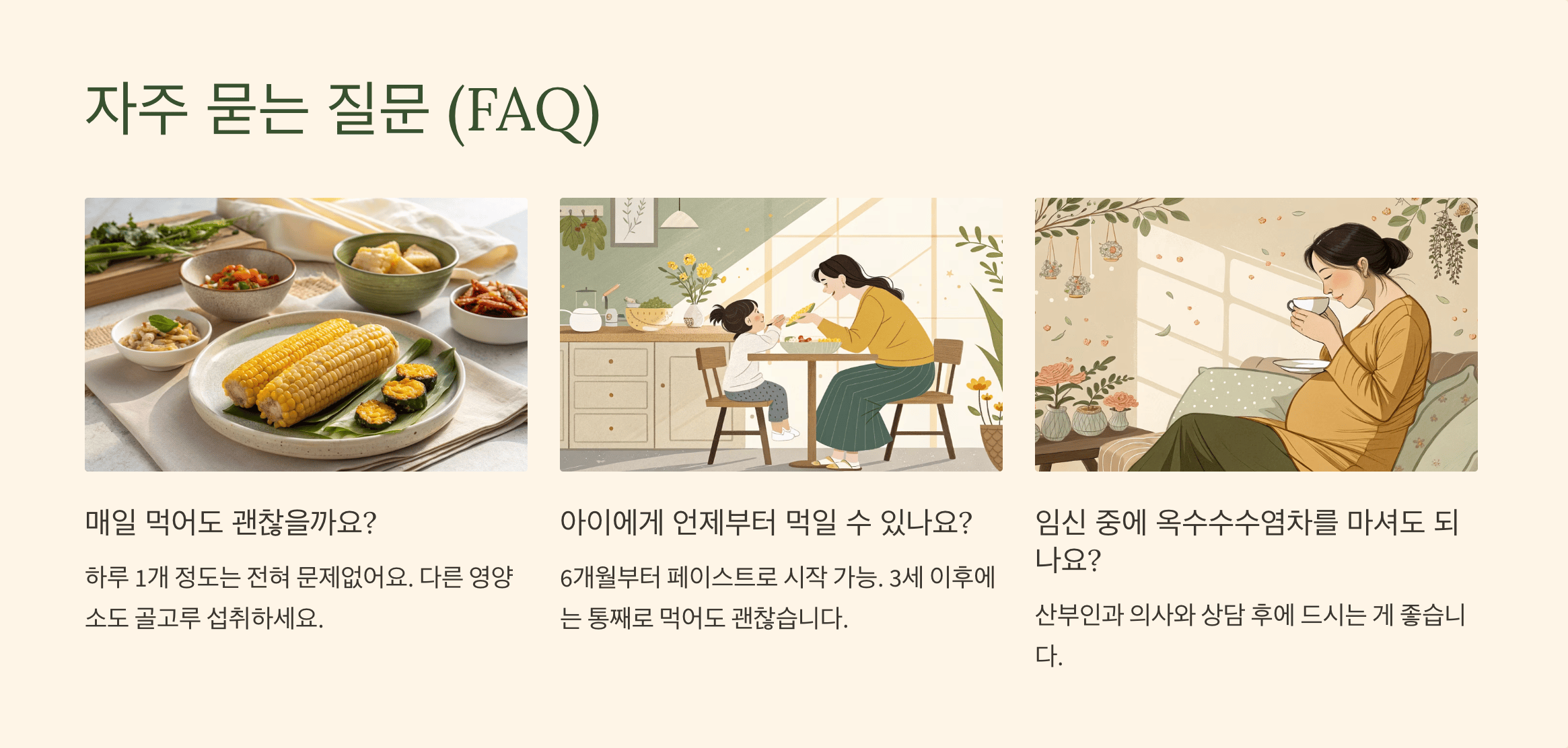 - 장 건강 솔루션: 옥수수의 식이섬유가 장 건강에 좋다는 걸 확인하셨다면, 변비나 소화 불량을 근본적으로 해결하는 방법들을 알아보세요.