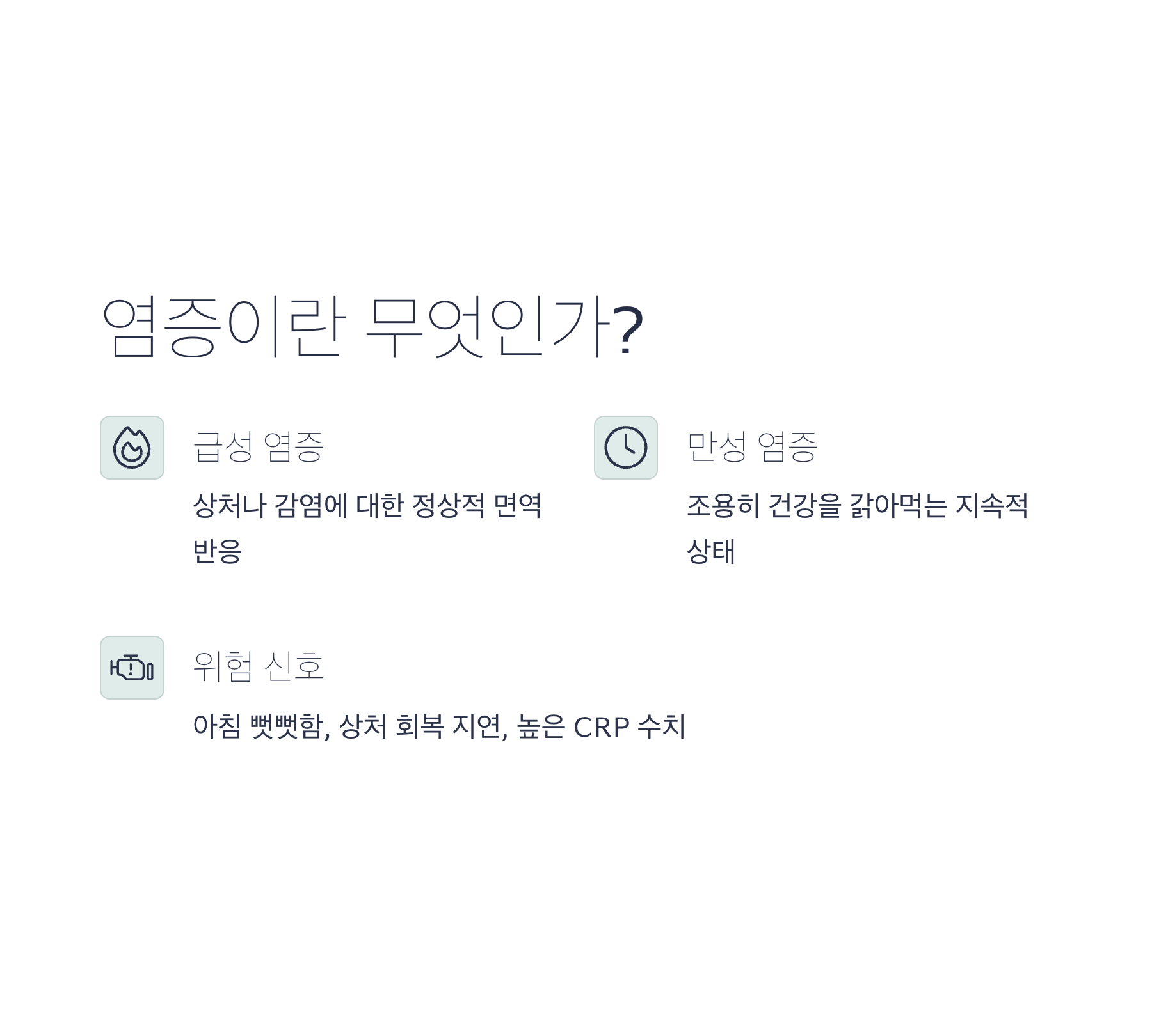 혹시 아침에 일어났을 때 관절이 뻣뻣하거나, 작은 상처도 잘 낫지 않는다고 느끼신 적 있나요? 바로 몸속 염증이 보내는 신호일 수 있어요!