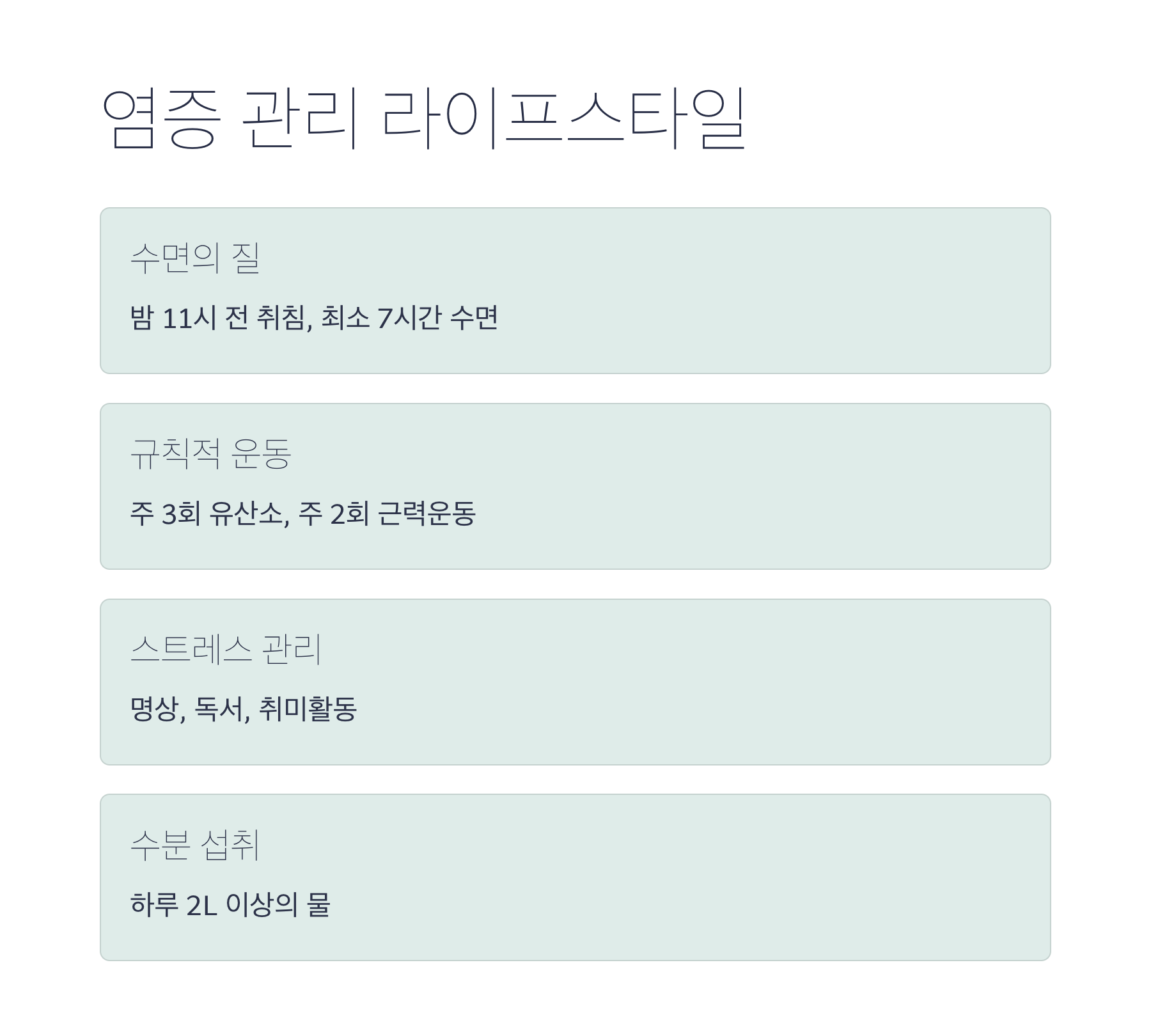핵심 포인트: 염증 관리는 음식만으로는 한계가 있어요. 생활 전반의 균형을 맞춰야 진정한 효과를 볼 수 있습니다!