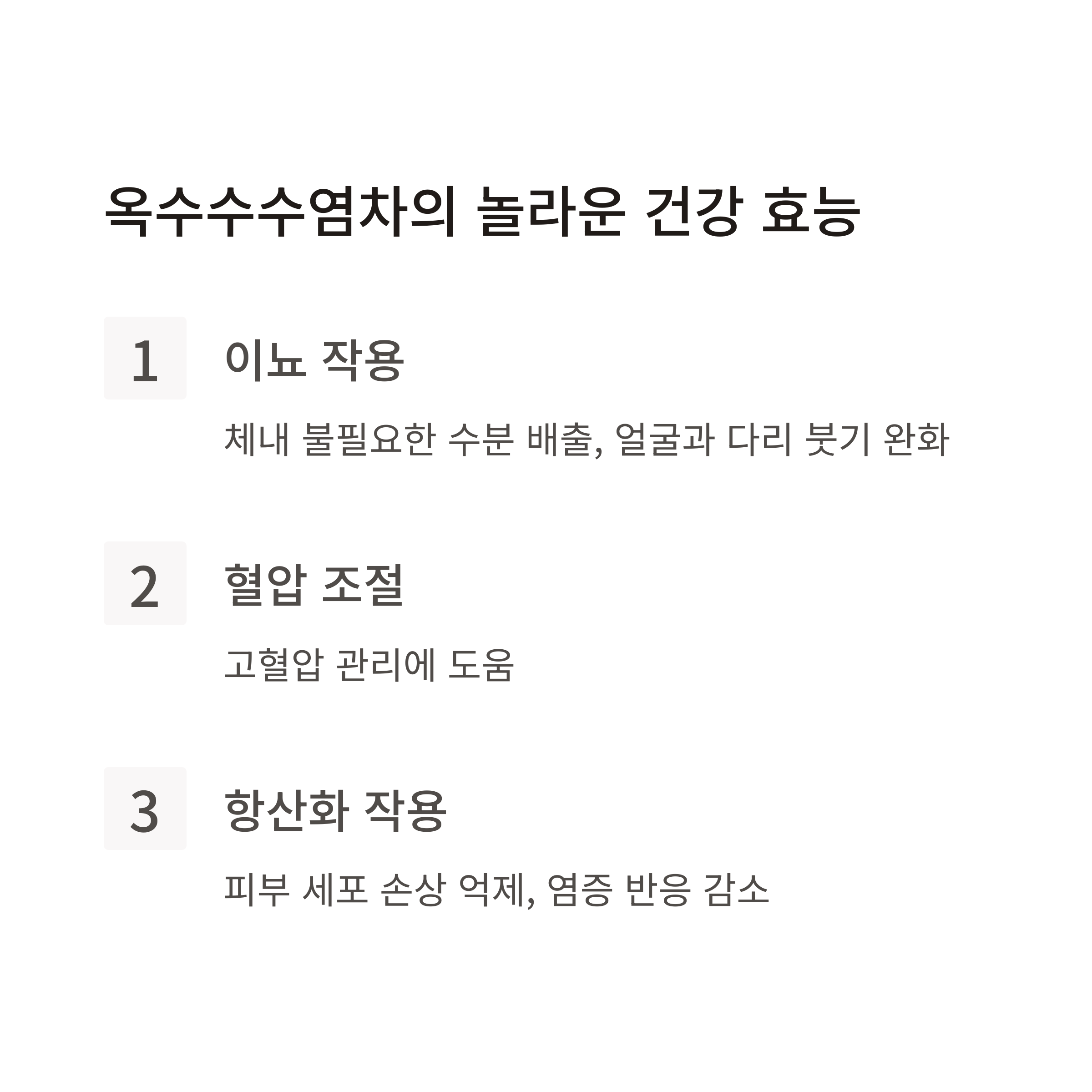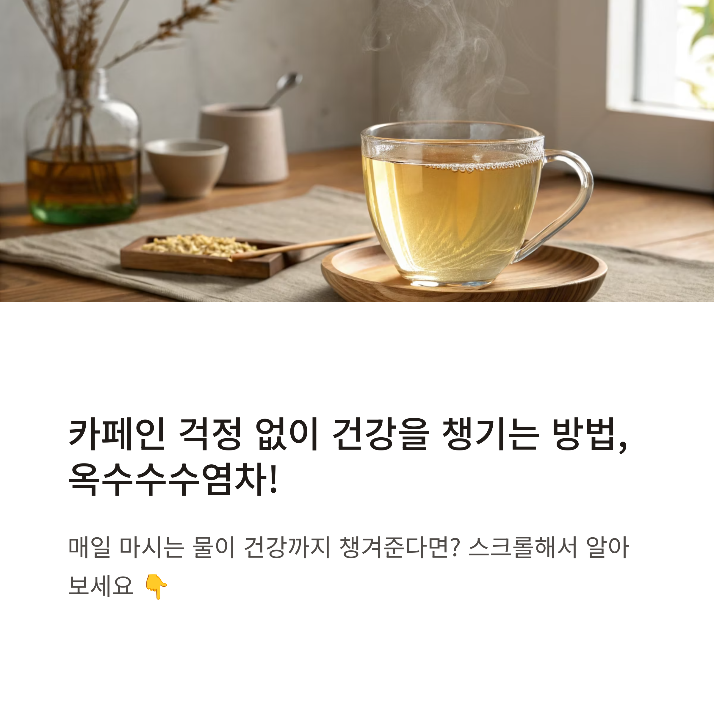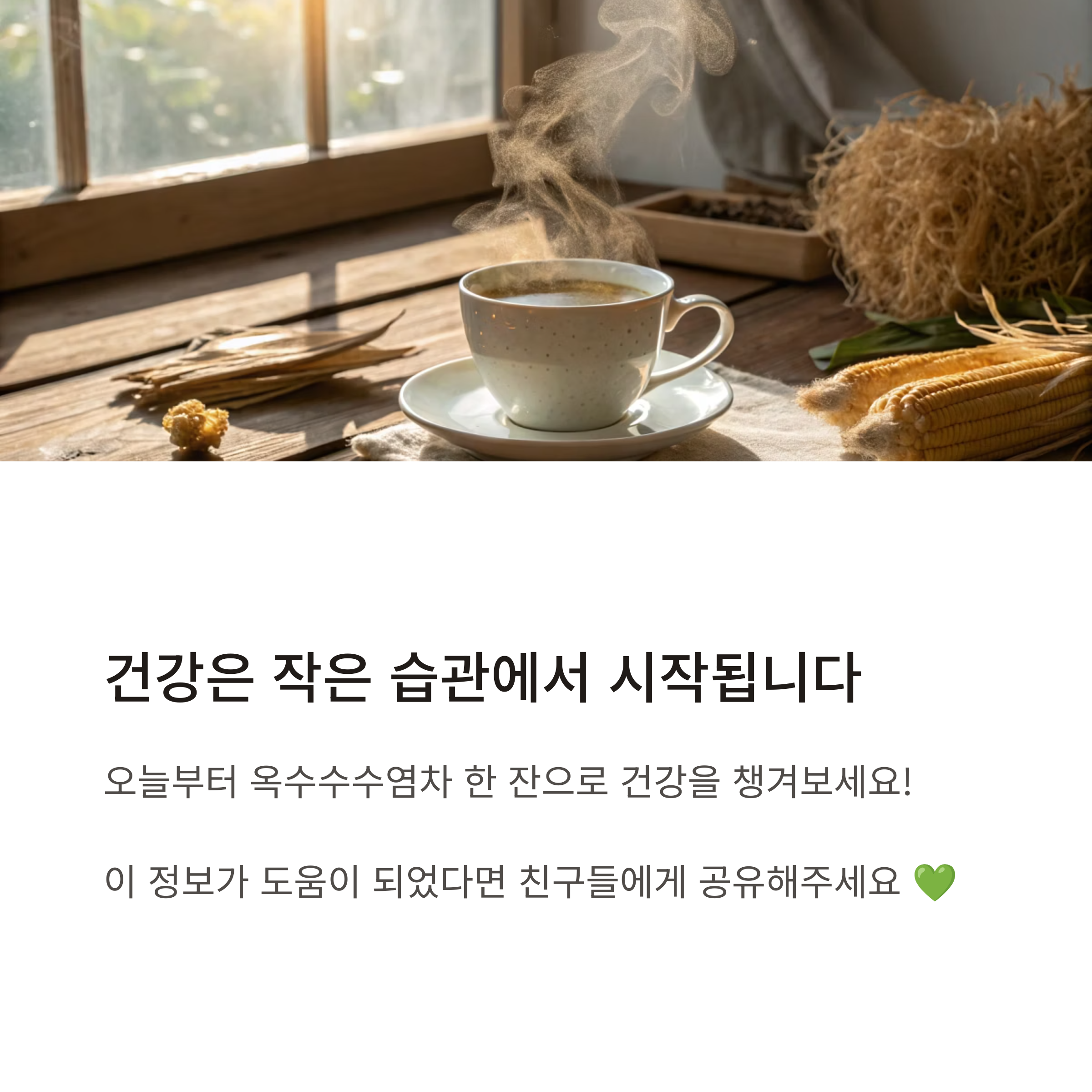 💡 건강은 작은 습관에서부터 시작됩니다. 오늘부터 옥수수수염차 한 잔으로 여러분의 건강을 지켜보세요!