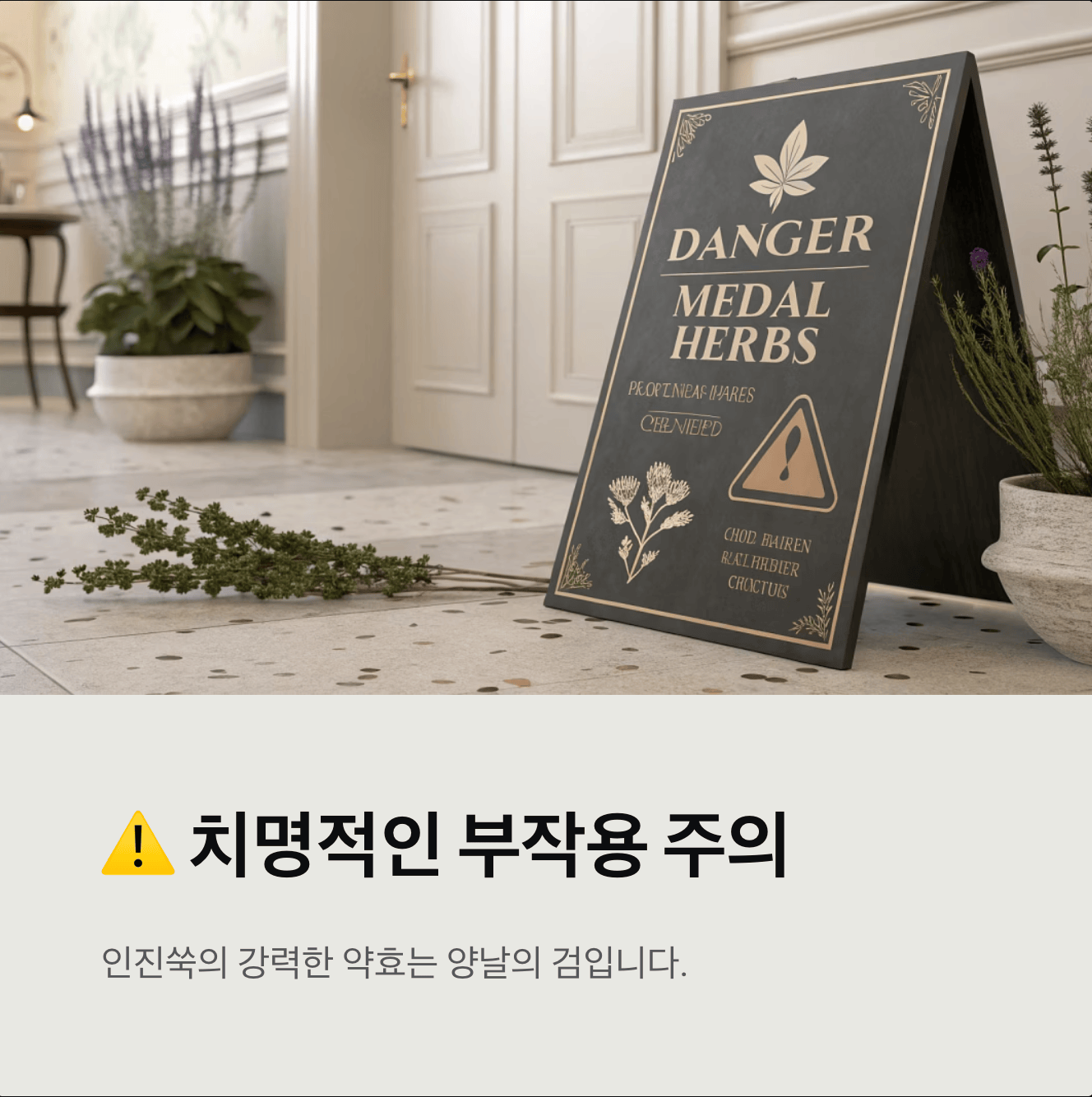 자, 이제부터가 진짜 중요한 내용입니다. 제가 이 글을 쓰기로 마음먹은 이유이기도 하고요. 인진쑥의 효능만 보고 '만병통치약'처럼 여기는 분들이 너무 많아요. 하지만 인진쑥의 강력한 약효는 양날의 검과 같습니다. 특히 그 차가운 성질 때문에 잘못 섭취하면 몸에 심각한 무리를 줄 수 있습니다. '간에 좋다'고 먹었는데 오히려 간독성을 유발해 간염으로 이어진 사례도 있고, 과용할 경우 저혈량성 쇼크나 부정맥 같은 응급상황이 발생할 수도 있다는 보고도 있습니다. 솔직히 이 부분 공부하면서 좀 무섭더라고요. 좋은 걸 먹으려다 몸을 망칠 수도 있겠다 싶어서요.