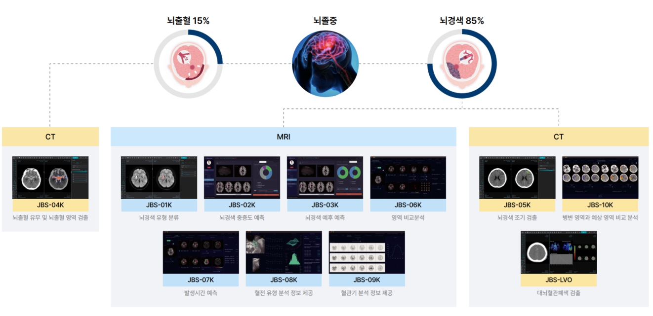 - 뇌졸중 전문 의료기업 / 뇌경색 진단 보조 솔루션(JBS-01K)는 ‘혁신의료기기 통합심사 ・ 평가 제도’를 통해 의료AI 솔루션 최초로 혁신 의료기기로 지정