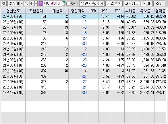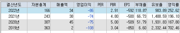 재무추이 / (신성장기업으로 영업손실로 인한 상폐 가능성 없음)