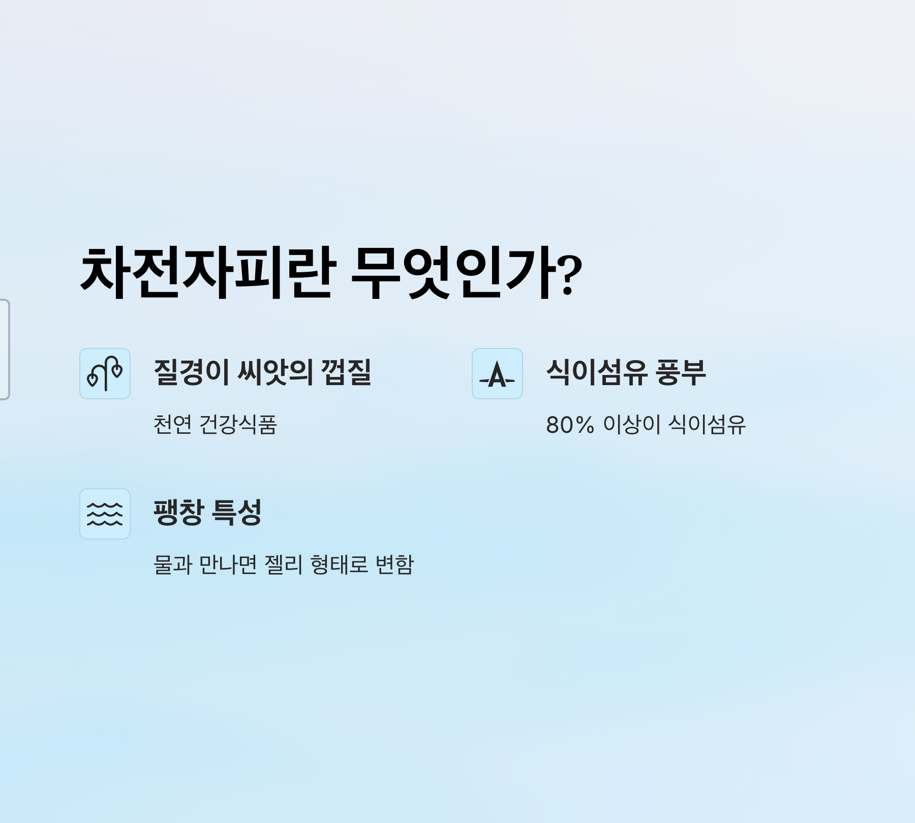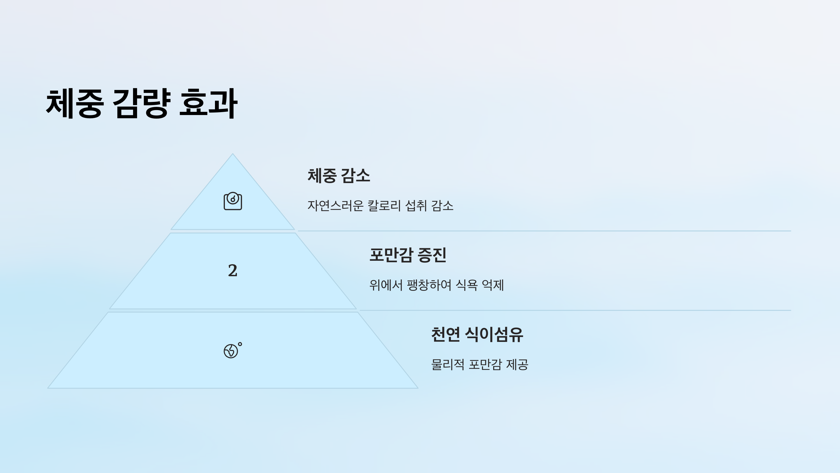 - 젤 형성 효과 - 수용성 식이섬유가 물과 만나 젤로 변하면서 소화 속도 조절
