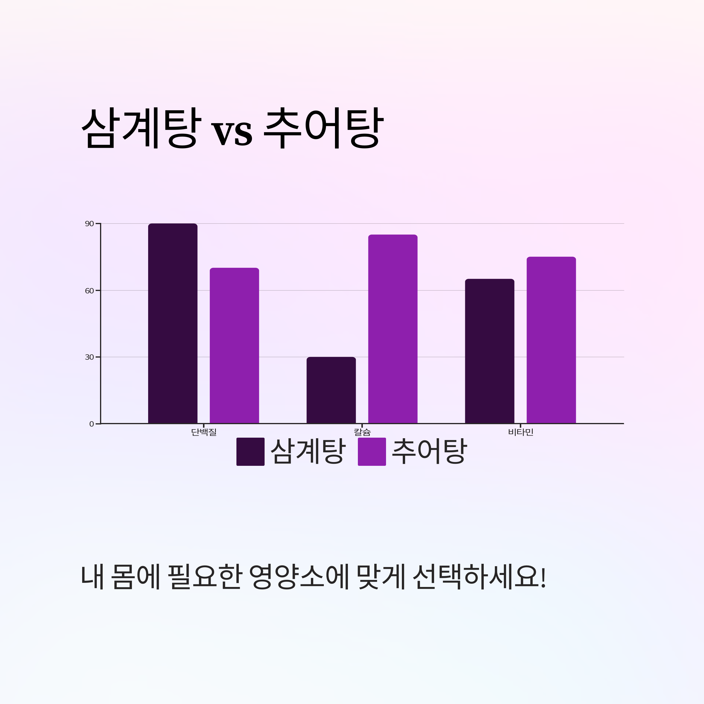 두 보양식 모두 훌륭하지만, 내 몸에 더 필요한 영양을 알고 먹으면 더 좋겠죠? 어떤 차이가 있는지 한눈에 비교해 드릴게요.