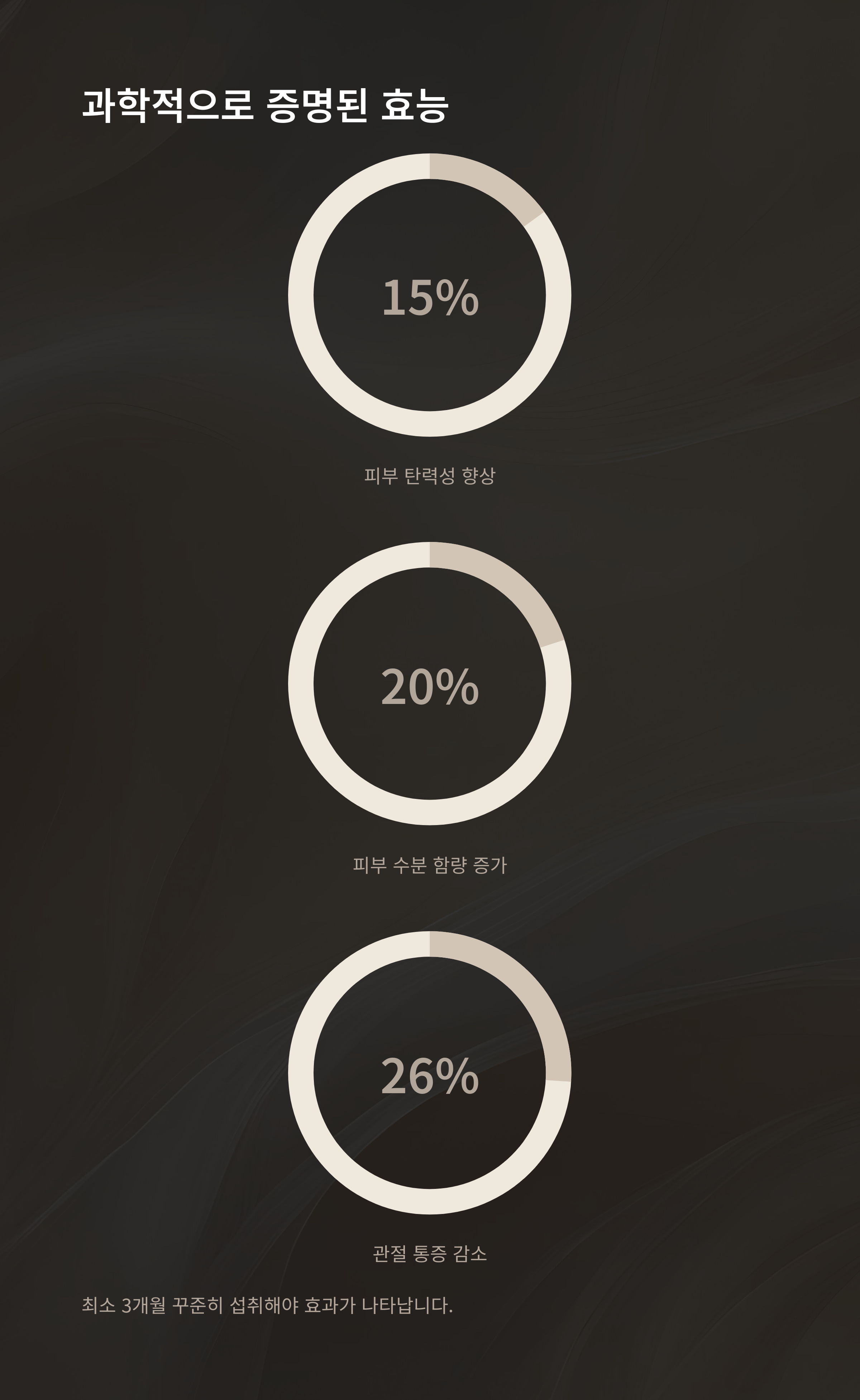 | 피부 건강 | 탄력성 7-15% 향상 수분 함량 12-20% 증가 주름 깊이 13-23% 감소 |