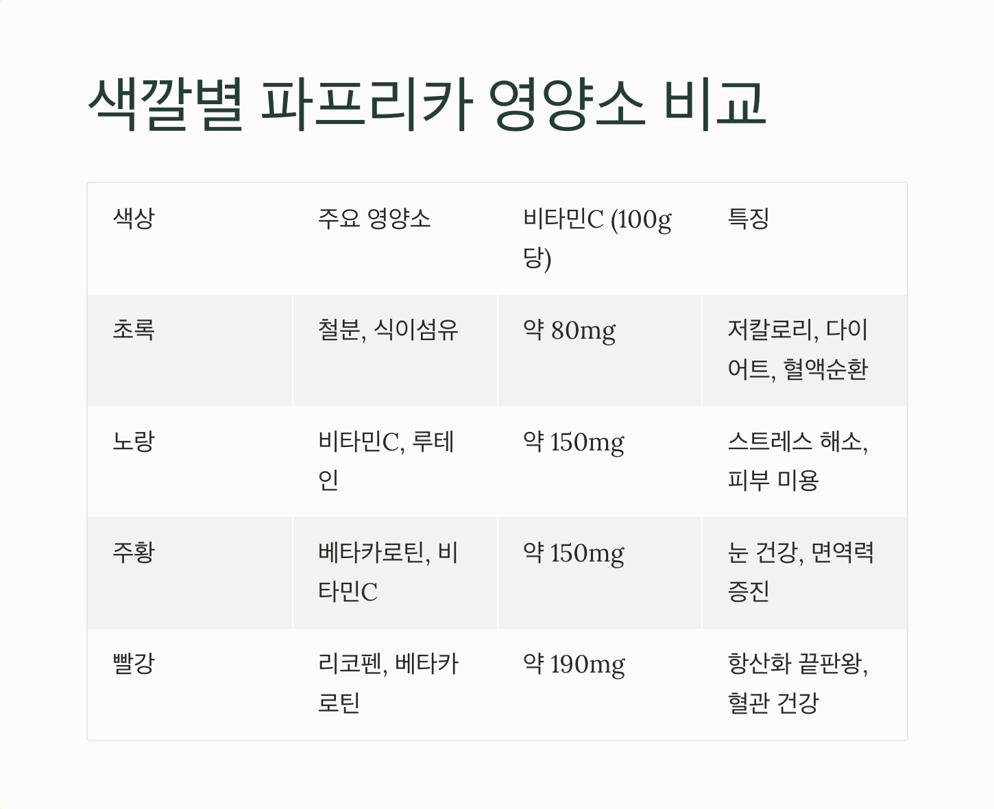 5. 한눈에 보는 색깔별 파프리카 영양소 전격 비교