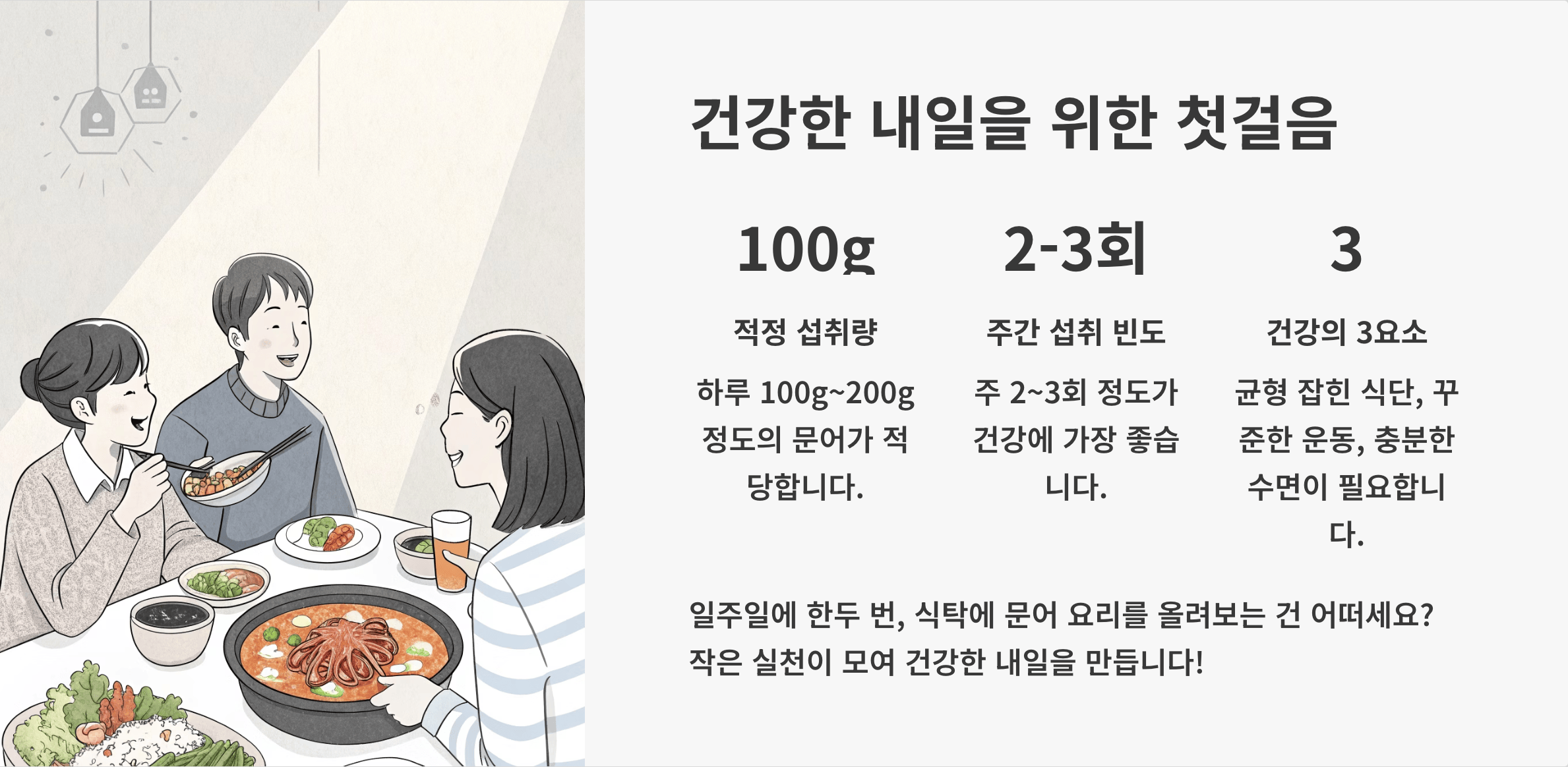 💡 오늘부터 시작하기: 일주일에 한두 번, 식탁에 문어 요리를 올려보는 건 어떠세요? 작은 실천이 모여 건강한 내일을 만듭니다!