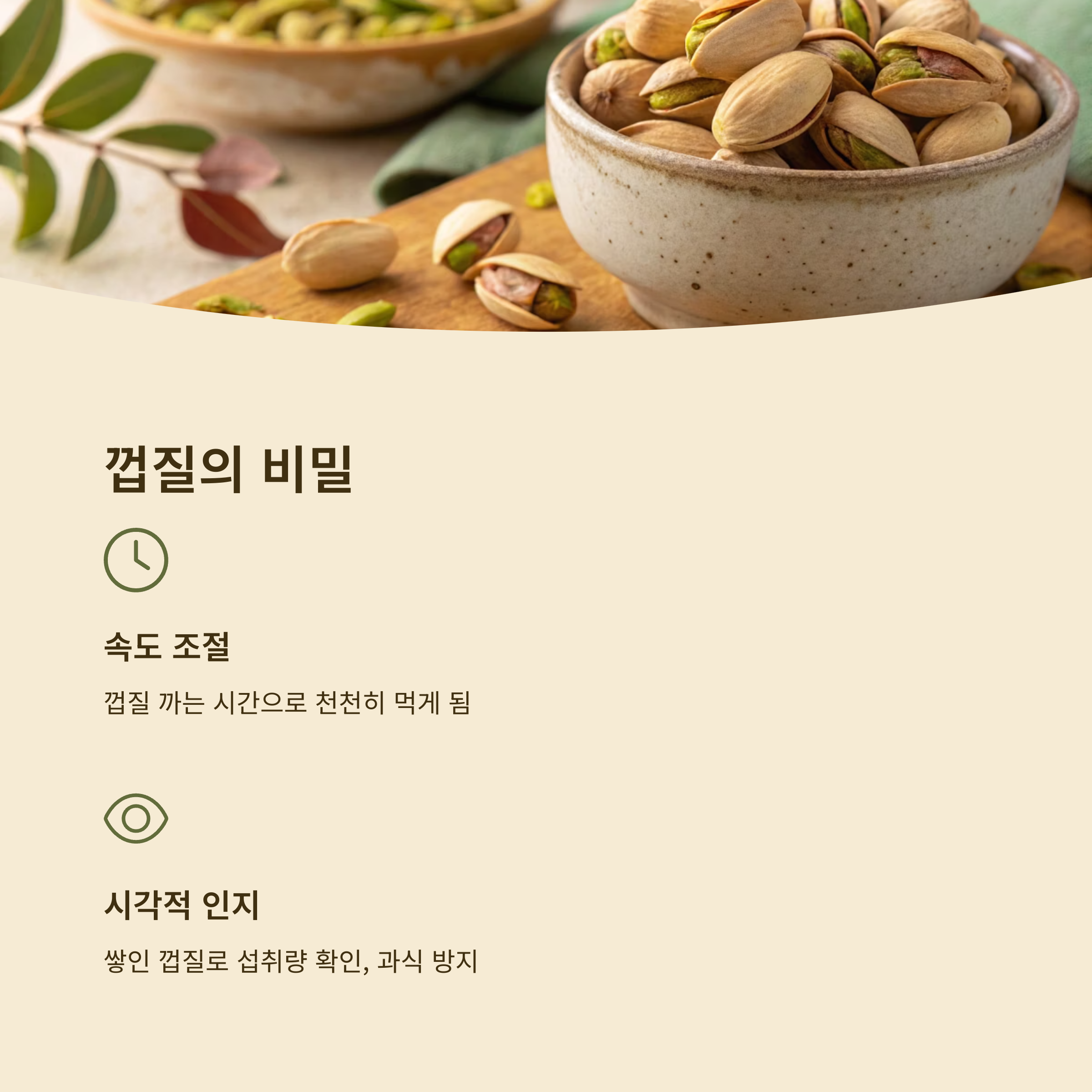 피스타치오는 영양 성분뿐만 아니라 '먹는 방식' 자체에도 다이어트의 비밀이 숨어있습니다. 바로 껍질을 직접 까서 먹는 행위입니다.