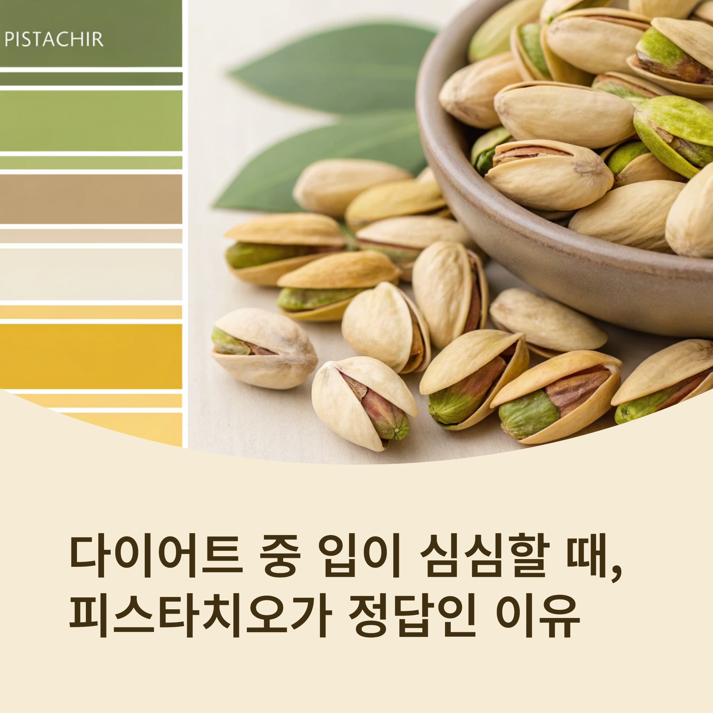 💡 한 줄 요약: 피스타치오는 낮은 칼로리, 완전 단백질, 포만감 증진, 과식 방지 효과까지 갖춰 과학적으로도 증명된 최고의 다이어트 파트너입니다.