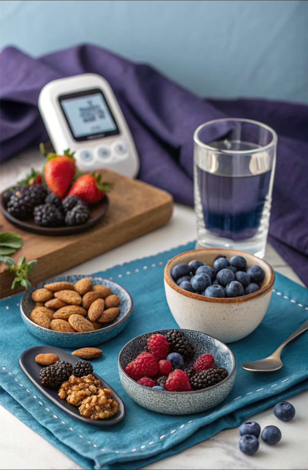 아몬드, 호두 같은 견과류나 삶은 달걀, 그릭 요거트가 최고예요. 단맛이 당길 때는 베리류나 사과 한 조각에 땅콩버터 발라 먹으면 혈당 올리지 않으면서도 만족도가 높아요!