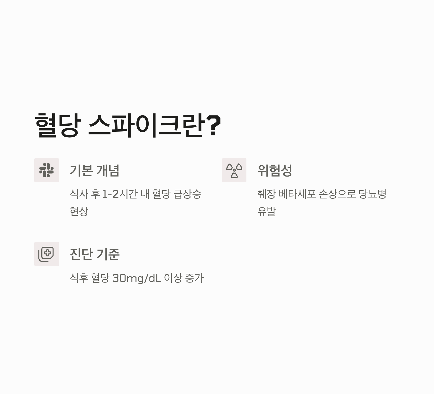 ⚠️ 혈당 스파이크의 심각한 위험성: 반복되면 췌장 베타세포가 혹사당해 인슐린 분비 능력이 떨어지고, 결국 제2형 당뇨병으로 이어질 수 있습니다!